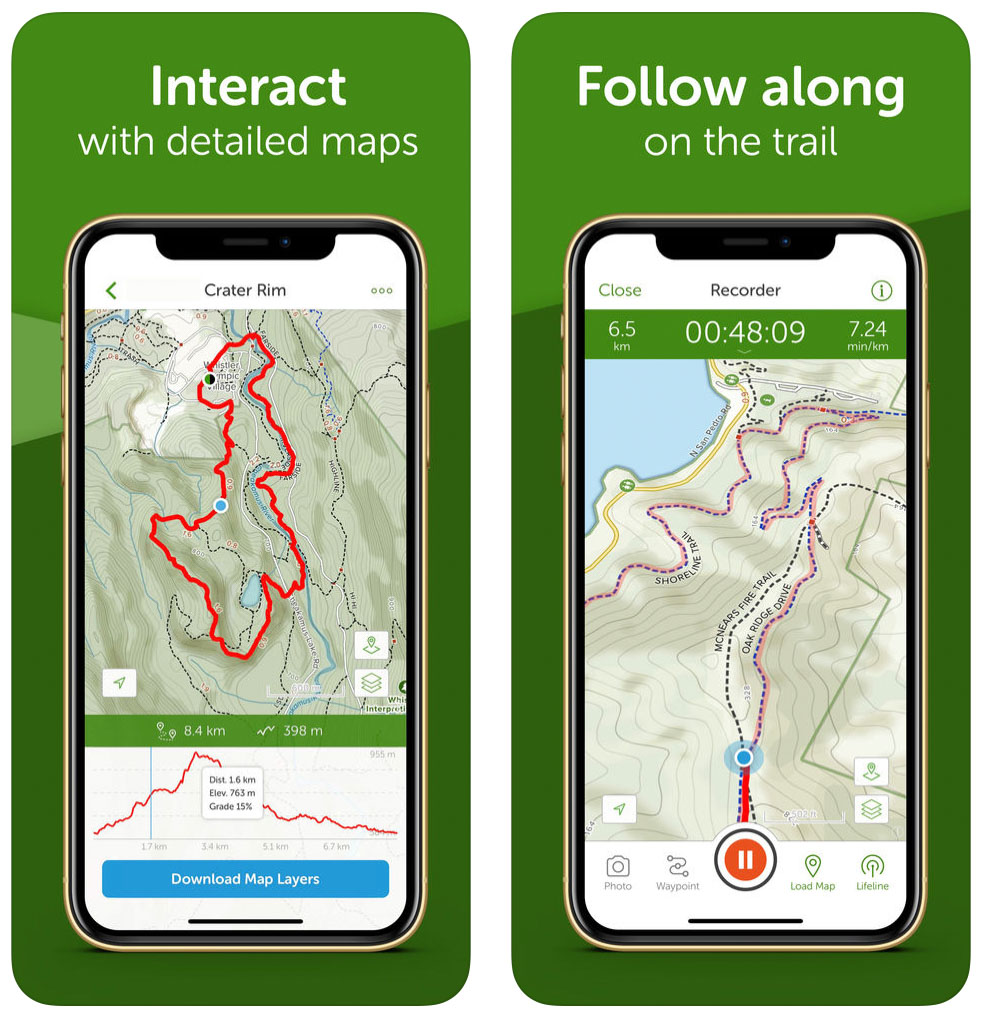 GPS navigation, elevation profiles, photo waypoints, and trail condition updates.